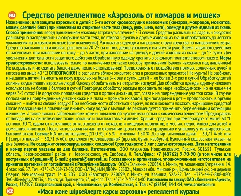 | Тип | аэрозоль |