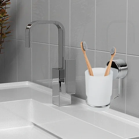 Стакан для туалетных принадлежностей LAIMA, нержавеющая сталь/стекло, крепление к стене, 607429
