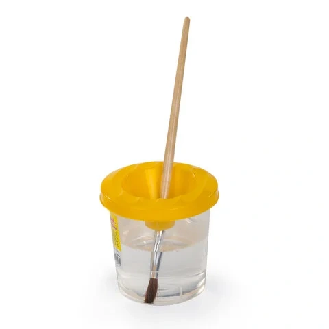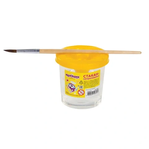 Специальная форма крышки стакана исключает возможность вытекания воды. Линия на прозрачном корпусе указывает на максимально возможный уровень наполнения. Выполнен из прочного пластика. Имеются специальные углубления на крышке для размещения кисточек. Полный объем - 210 мл. Объем до уровня - 75 мл.