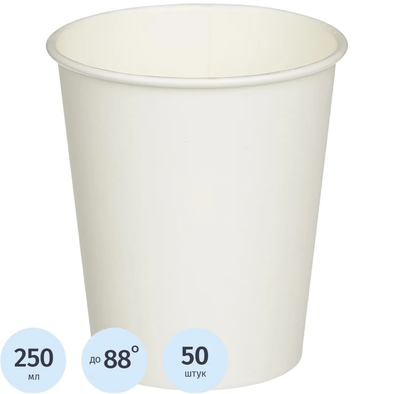 Стакан одноразовый бум 1-сл. d-80мм 250мл белый КОМУС 50шт/уп