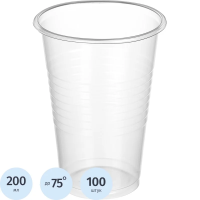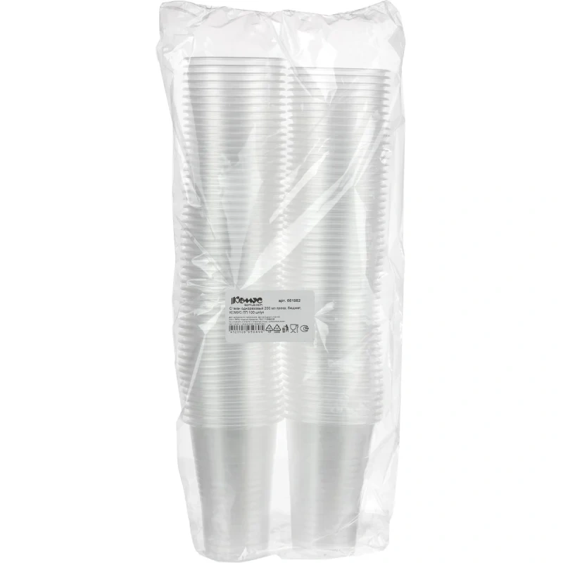 Стакан одноразовый Бюджет 200мл, пластиковый прозрачный, 100шт/уп