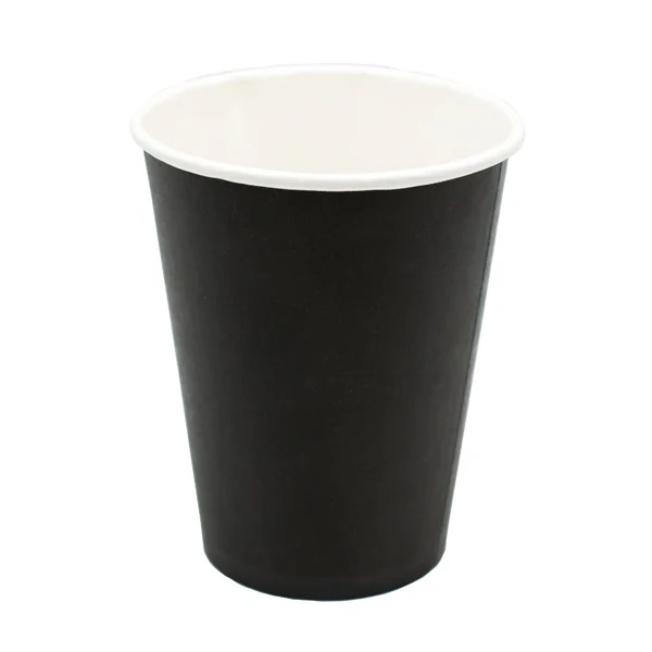 Бумажный одноразовый чёрный стакан 350 мл отлично подходит для чая, кофе и других горячих напитков, а также и для холодных напитков безо льда.