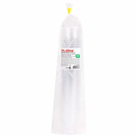 Стакан одноразовый Laima Стандарт 200мл, пластиковый прозрачный, 50шт/уп