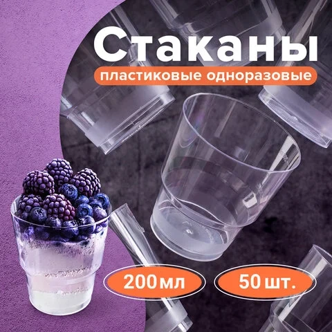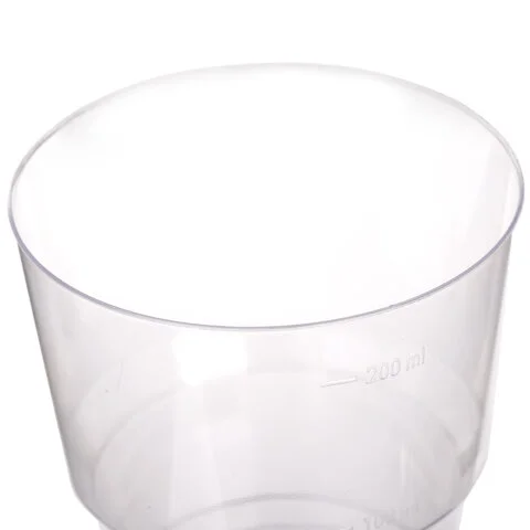 Изготовлены из экологически чистого полимера – полипропилена. Пригодны для использования в микроволновых печах. Прозрачные стаканы объемом 200 мл предназначены для холодных и горячих (до 70 градусов) напитков. Диаметр - 71 мм. Поставляются комплектом по 50 штук.