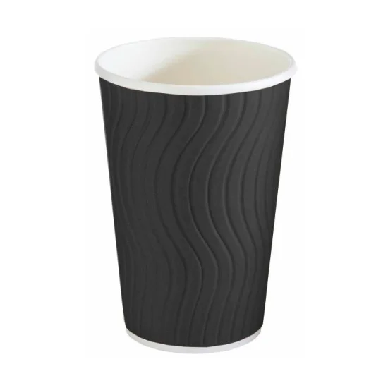 Стакан одноразовый Скандипакк черный рифленый, 400мл, бумажный двухслойный, 30шт/уп