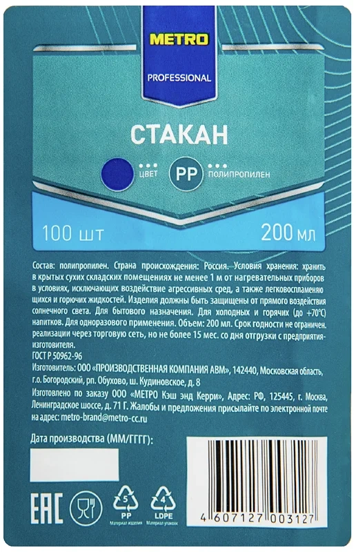 одноразовые стаканы полипропилен