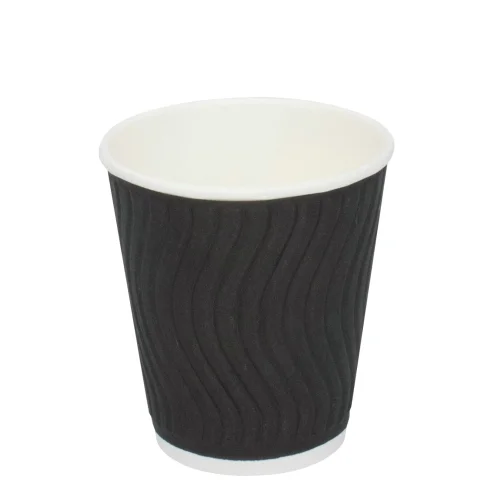 Стакан одноразовый Скандипакк NDW9 черный рифленый, 260мл, бумажный, для горячих напитков, 50шт/уп
