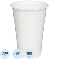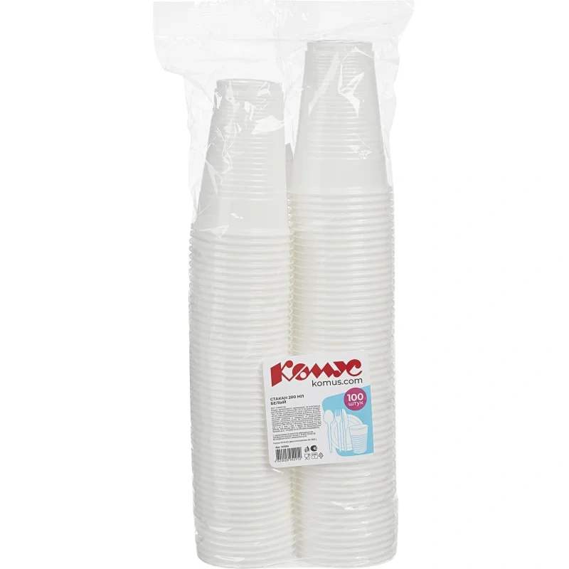 Стакан одноразовый пластиковый 200 мл, белый, 100 штук в упаковке Комус Эконом. Стаканы одноразовые предназначены как для холодных, так и для горячих напитков. Имеют рифленые стенки, изготовлены из прозрачного полипропилена белого цвета. Объем - 200 мл. Максимальная температура жидкости - 75 градусов по Цельсию. Одноразовые стаканы поставляются в упаковках по 100 штук, по 24 упаковки в транспортном коробе. Верхний диаметр: 70 мм. Нижний диаметр: 42 мм. Высота: 97 мм. Товар произведен под контролем 'Комус'. Мы специально позаботились о Партнерах, которые превыше всего ценят качество и комфорт, и разработали линейку Одноразовой посуды самых востребованных размеров для обеспечения быстрого питания в офисе, образовательных и производственных учреждениях, сферы гостеприимства и общественного питания и многих других. Производство расположено в России, что гарантирует постоянный контроль качества и оптимальные цены. Законодательные и технические документы