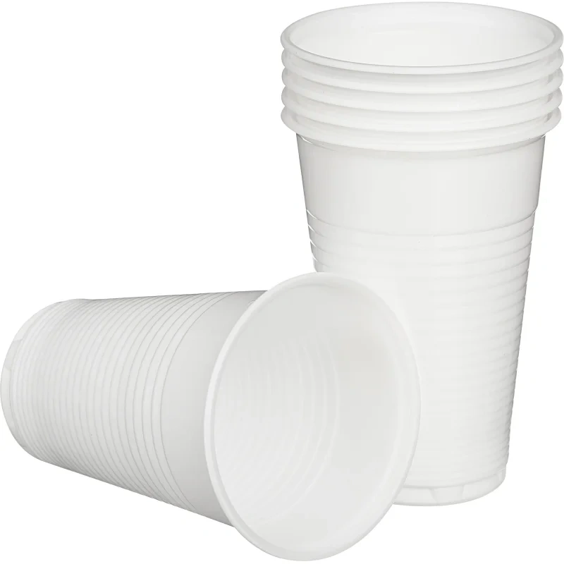 Стакан одноразовый Стиролпласт Эконом 200мл, пластиковый белый, 100шт/уп