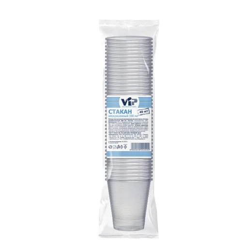 Стакан одноразовый Vip пластиковый прозрачный 100мл, 40шт