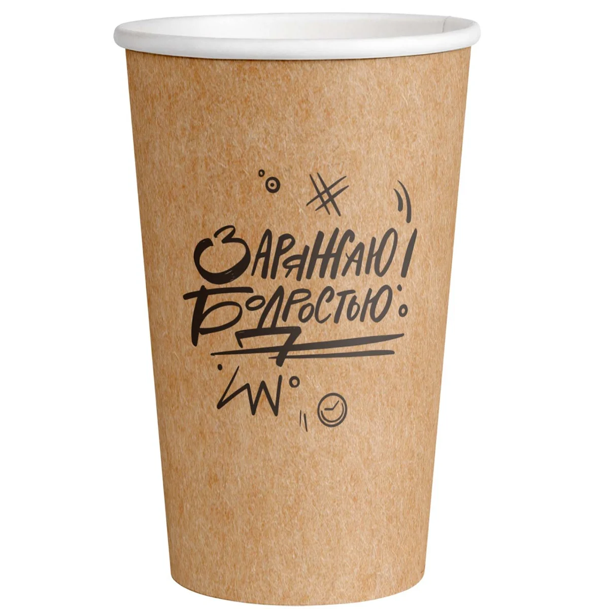 Стакан одноразовый Vip Заряжаю бодростью бумажный коричневый 400мл, 50шт