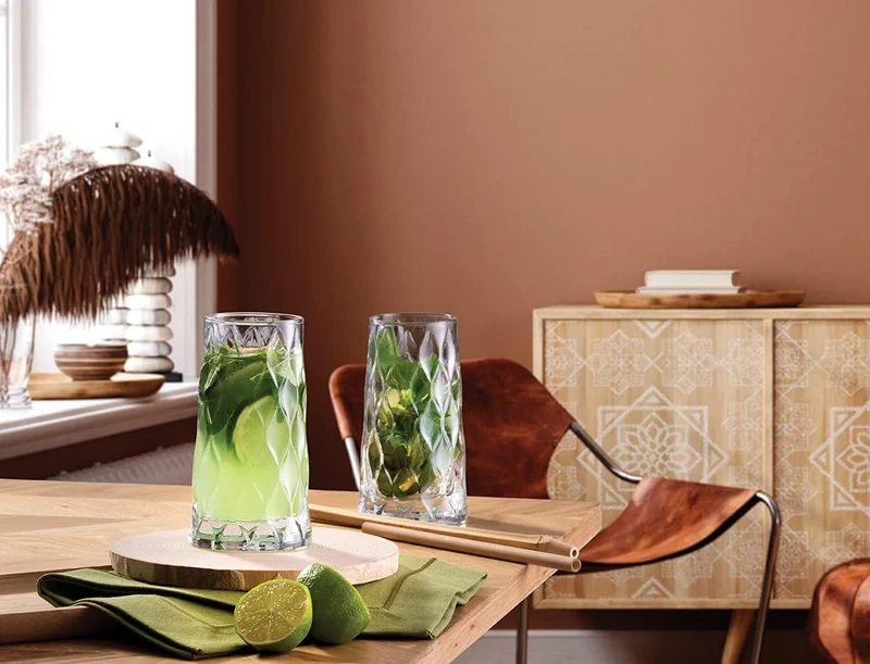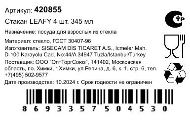Стильные стаканы из коллекции Leafy объемом 345мл изготовлены из качественного натрий-кальций-силикатного стекла, подходят для сервировки праздничного стола и ежедневного использования. В наборе 4 стопки. Можно мыть в посудомоечной машине. Поставляются в брендированной упаковке, что делает их отличным вариантом для подарка.