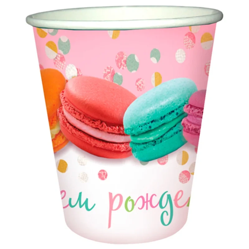 Стаканы бумажные ПатиБум 'С Днем Рождения. Макаруны', 200мл, 6шт.