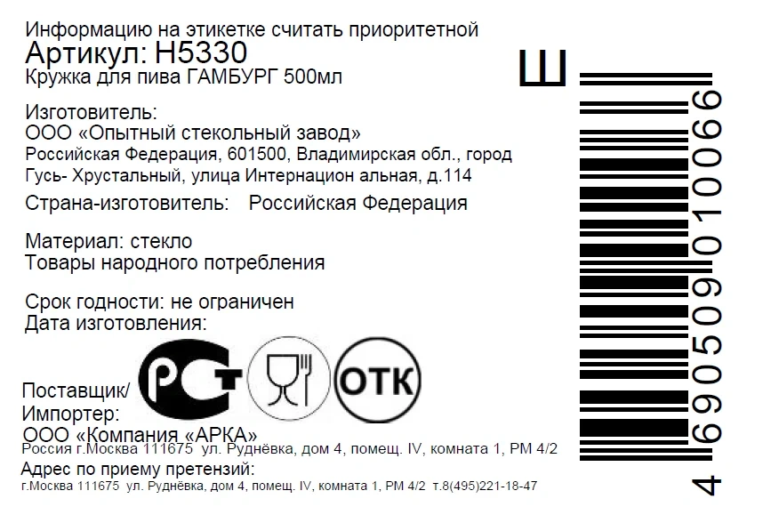 Кружка Arcoroc Гамбург пиво, 500мл