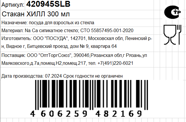 Стакан Hobby Life Glassy в ассортименте, 480мл