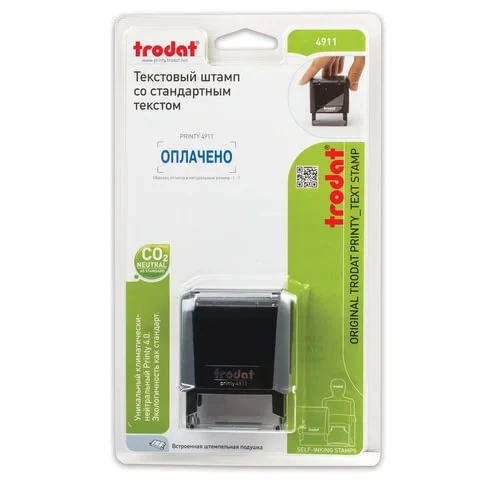 Штамп стандартный 'ОПЛАЧЕНО, дата', оттиск 38 х 14 мм, синий, TRODAT IDEAL 4911 DB - 3.13, 161489