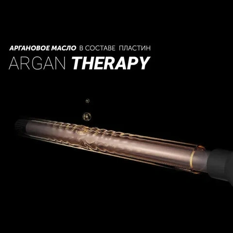 Argan Therapy – пластины обогащены Аргановым маслом. При нагреве волосы становятся восприимчивы к внешнему воздействию и Аргановое масло внедряется в структуру волос, позволяя им оставаться здоровыми и приобрести естественный блеск.