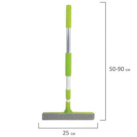 В комплект OfficeClean 'Professional' входит телескопический черенок, раскладывающийся до 150 см и удобная, практичная окномойка. Окномойка с одной стороны оснащена поролоновой губкой для тщательного отмывания, а с другой - резиновой кромкой, с помощью которой легко собрать всю влагу, оставив стекло зеркально чистым и без разводов.