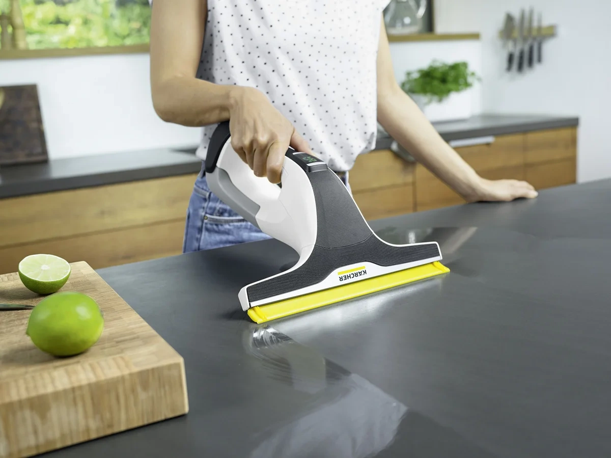 Компания Karcher в очередной раз усовершенствовала свой стеклоочиститель и разработала еще более универсальную модель с инновационными технологиями и более длительным сроком службы аккумулятора - WV 6 Plus. Новое, более длинная всасывающеая поверхность позволяет беспрепятственно удалять излишки жидкости. Время работы аккумулятора стеклоочистителя - 100 минут - означает, что вы сможете работать еще дольше. Вы можете точно спланировать уборку благодаря дисплею, на котором отображается оставшееся время работы в минутах. Как всегда, продуманное сочетание распылителя и салфетки из микрофибры обеспечивает высокоэффективную очистку и сверкающую чистоту окон - без разводов и остатков. Привычная комбинация пульверизатора для нанесения чистящего средства, микроволоконной насадки для его распределения по стеклу и самого стеклоочистителя, оснащенного электрическим всасывающим устройством, обеспечивает сияющую чистоту стекол - на них не остается никаких полос или разводов. Прилагаемая микроволоконная насадка для наружных работ позволяет очищать даже сильнозагрязненные поверхности на открытом воздухе. К тому же эргономичный аккумуляторный стеклоочиститель Karcher WV 6 Plus гарантирует максимальную гигиеничность - ведь пользователю не приходится вступать в контакт с грязной водой.