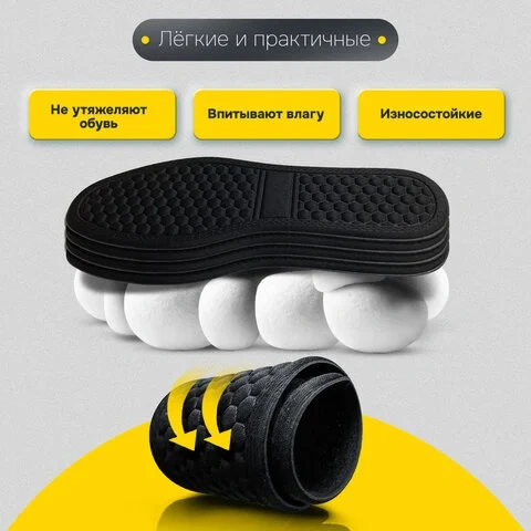 Стельки выполнены из инновационного материала - пенополиуретана. Обладают массажным эффектом, снижающим нагрузку на опорно-двигательный аппарат и уменьшающим усталость ног. Оснащены влаговпитывающим покрытием, которое впитывает влагу, что способствует нормализации микроклимата у вас в обуви.