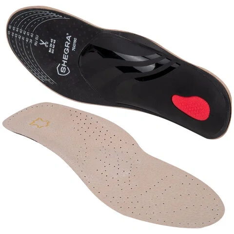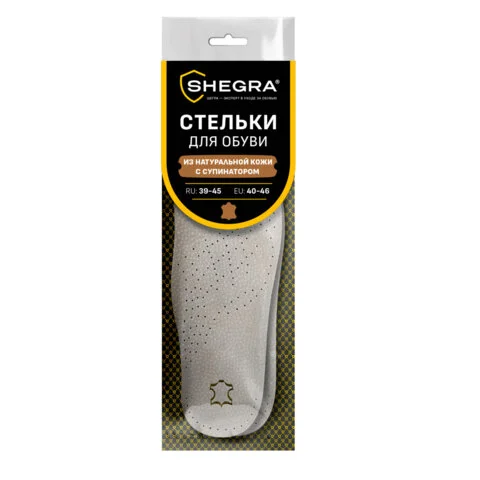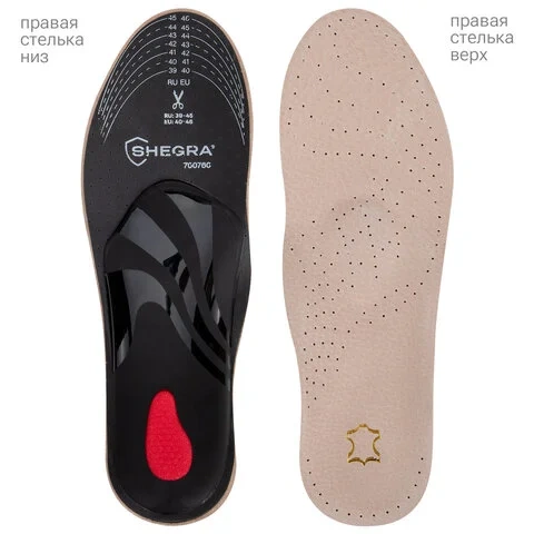Стельки для обуви из натуральной кожи c СУПИНАТОРОМ, размер RU 39-45 / EU 40-46, с линиями выреза, S