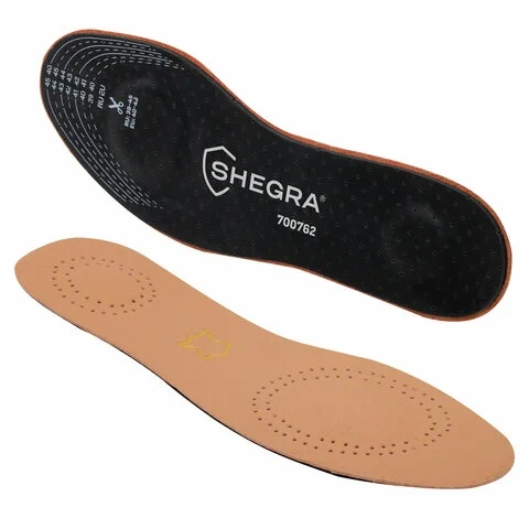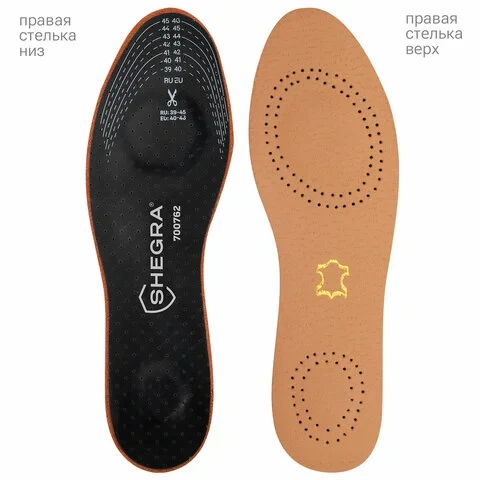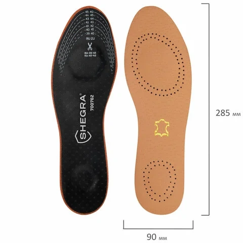 Стельки для обуви из натуральной кожи с двумя амортизаторами, размер RU 39-45 / EU 40-46 с линиями в