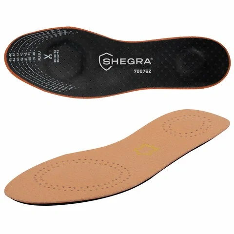 Основа стелек выполнена из латексной пены с добавлением активированного угля, который предотвращает появление и размножение бактерий, надолго нейтрализует неприятные запахи. Латексная пена снижает и поглощает ударные нагрузки при ходьбе. Супинатор поперечного свода стопы уменьшает нагрузку на передний отдел стопы, а пяточный амортизатор снижает и поглощает ударную нагрузку на пятку. Поверхность стелек выполнена из натуральной кожи, которая обеспечивает воздухопроницаемость, сохраняя свежесть в обуви. Перфорация способствует дополнительной вентиляции, создавая оптимальный микроклимат.