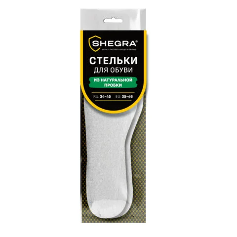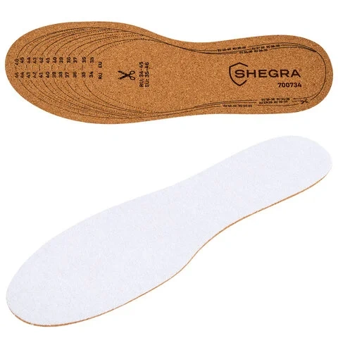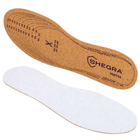 Стельки для обуви из НАТУРАЛЬНОЙ ПРОБКИ, УНИВЕРСАЛЬНЫЙ размер 34-45 / EU 35-46, с линиями выреза, SH