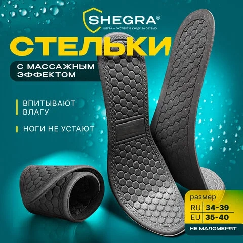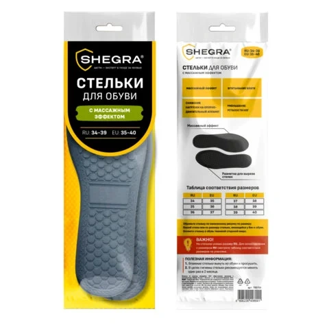 Стельки для обуви с МАССАЖНЫМ ЭФФЕТОМ, материал HI-POLY, размер RU 34-39 / EU 35-40, с линиями вырез