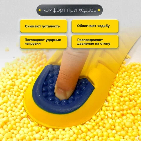 Стельки выполнены из инновационного полиуретана, который имеет структуру микропор, заполненных воздухом, что обеспечивает поглощение ударных нагрузок, водонепроницаемость и износостойкость. Пяточный амортизатор и амортизатор передней части стопы снижают и поглощают ударную нагрузку при ходьбе. Супинатор продольного свода стопы создает комфорт при движении, снижается нагрузка на опорно-двигательный аппарат, создается массажный эффект и ноги не устают. Стельки оснащены влаговпитывающим покрытием, которое впитывает влагу, что способствует нормализации микроклимата у вас в обуви.