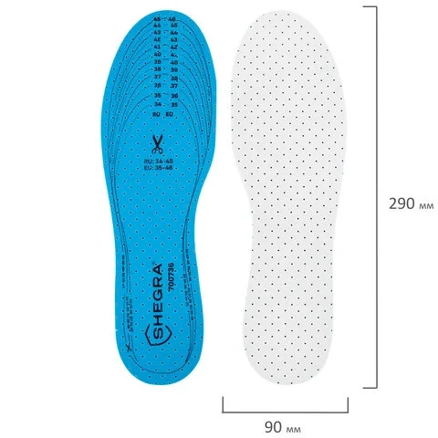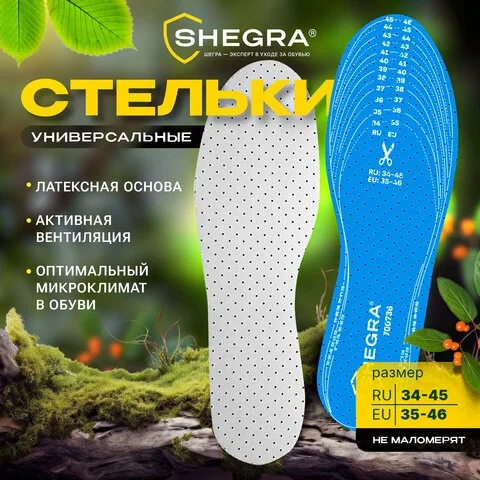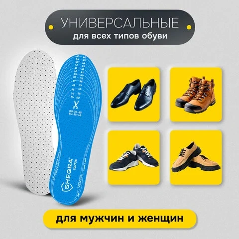 Стельки для обуви УНИВЕРСАЛЬНЫЕ, УНИВЕРСАЛЬНЫЙ размер RU 34-45 / EU 35-46, с линиями выреза, SHEGRA