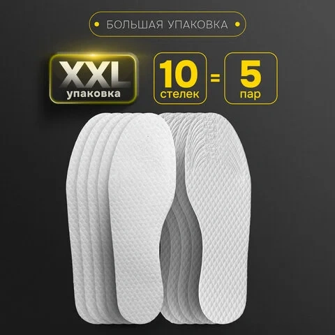 Стельки для обуви впитывающие от пота и запаха, КОМПЛЕКТ 5 пар, размер RU 33-45 / EU 34-46, с линиям
