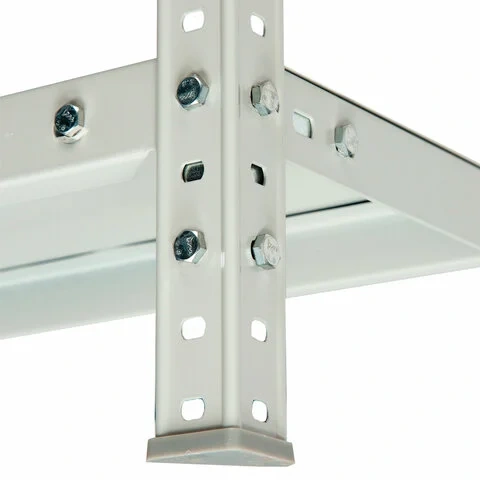 Стойка имеет разборную конструкцию, благодаря чему стеллаж поставляется в компактной упаковке. Максимальная нагрузка на полку при этом достигает 100 кг, на стеллаж - до 500 кг. Стойки с усиленным угловым профилем сложного сечения 30х30 мм и толщиной металла 1,2 мм.
