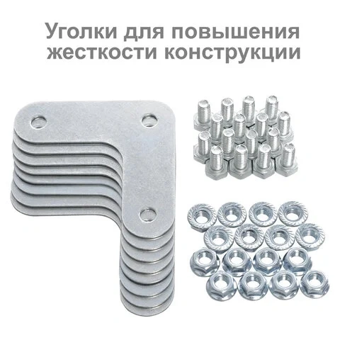 Для повышения жесткости всей конструкции верхняя и нижняя полка усилена дополнительными Г-образными уголками.