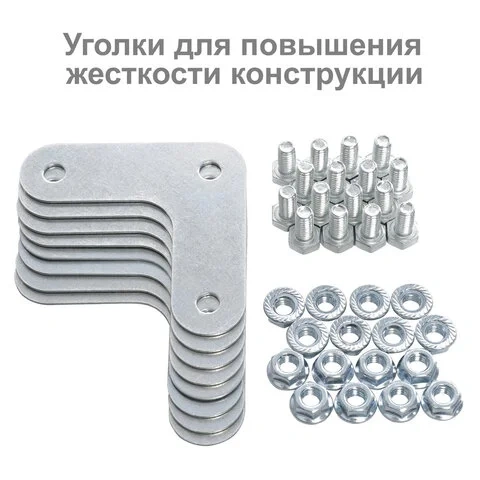 Для повышения жесткости всей конструкции верхняя и нижняя полка усилена дополнительными Г-образными уголками.