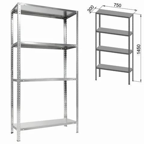 Стеллаж металлический Практик ES облегченный 1450х750х300мм, оцинкованная сталь, 4 полки