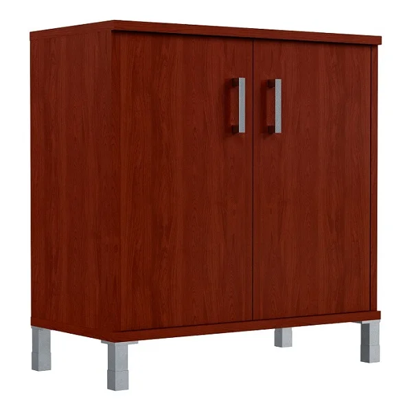 Широкий низкий шкаф BORN для офисного или домашнего использования. Размеры - 900х920х450 мм, цвет - Бургунди. Двустворчатый шкаф оснащенный 2 просторными полочками, которые закрываются дверцами из ЛДСП под цвет конструкции. На дверцах установлены стильные металлические ручки. Конструкция оснащена прочными силовыми креплениями – эксцентриковыми стяжками. Все торцы основных элементов надежно защищены кромкой ПВХ – 2 мм. Регулируемые по высоте опоры обеспечат шкафу устойчивость на неровном полу.