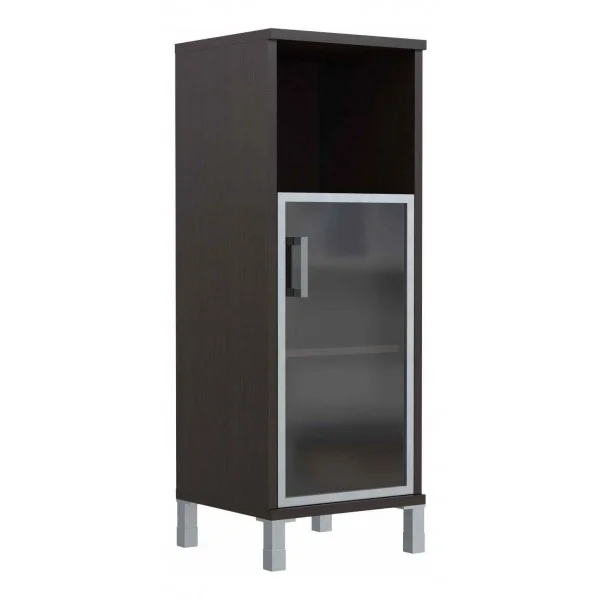 Компактный средний шкаф BORN для офисного или домашнего использования. Размеры - 475х1286х450 мм, тип – правосторонний, цвет – Венге Магия. Оснащен 3 просторными полочками, 2 нижние закрываются стеклянной дверцей с металлической рамкой, а верхняя - открытая. На дверце установлена стильная металлическая ручка. Шкаф имеет опоры увеличенной длины. Конструкция оснащена прочными силовыми креплениями – эксцентриковыми стяжками. Все торцы основных элементов шкафа надежно защищены кромкой ПВХ – 2 мм. Регулируемые по высоте опоры обеспечат шкафу устойчивость на неровном полу.