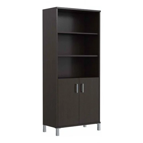 Широкий шкаф-стеллаж BORN для офисного или домашнего использования. Размеры - 900х2054х450 мм, цвет - Венге Магия. Шкаф имеет опоры увеличенной длины. Двустворчатый шкаф оснащен 5 просторными полками, две нижние закрыты дверцами из ЛДСП под цвет конструкции, три верхние – открытые. На дверцах установлены стильные металлические ручки. Конструкция шкафа оснащена прочными силовыми креплениями – эксцентриковыми стяжками. Все торцы основных элементов шкафа надежно защищены кромкой ПВХ – 2 мм. Регулируемые по высоте опоры обеспечат шкафу устойчивость на неровном полу.
