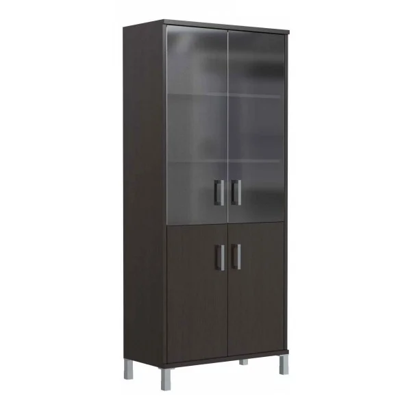 Широкий комбинированный шкаф BORN для офисного или домашнего использования. Размеры - 900х2054х450 мм, цвет - Венге Магия. Шкаф имеет опоры увеличенной длины. Двустворчатый шкаф оснащен 5 просторными полками, две нижние закрыты дверцами из ЛДСП под цвет конструкции, три верхние – стеклянными дверцами. На всех дверцах установлены стильные металлические ручки. Конструкция шкафа оснащена прочными силовыми креплениями – эксцентриковыми стяжками. Все торцы основных элементов шкафа надежно защищены кромкой ПВХ – 2 мм. Регулируемые по высоте опоры обеспечат шкафу устойчивость на неровном полу.