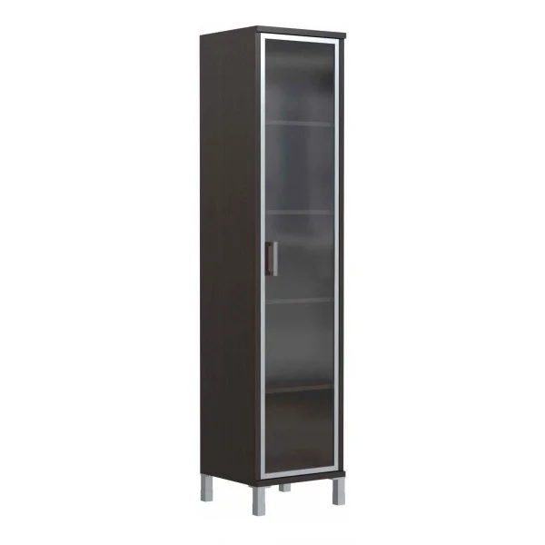 Универсальный высокий шкаф BORN для офисного или домашнего использования. Размеры - 475х2054х450 мм, цвет - Венге Магия. Шкаф имеет опоры увеличенной длины. Оснащен 5 полками, которые закрыты стеклянной дверцей с металлической рамкой по краям. На дверце установлена стильная металлическая ручка. Конструкция шкафа оснащена прочными силовыми креплениями – эксцентриковыми стяжками. Все торцы основных элементов шкафа надежно защищены кромкой ПВХ – 2 мм. Регулируемые по высоте опоры обеспечат шкафу устойчивость на неровном полу.