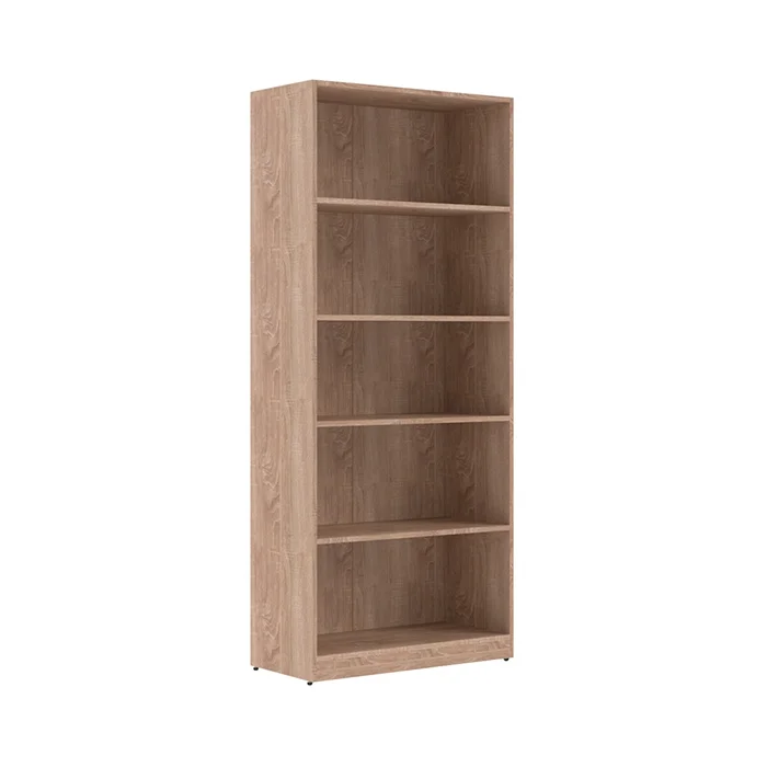 Высокий и широкий стеллаж SIMPLE для офисного или домашнего использования. Размеры - 770х1815х359 мм, цвет - Дуб Сонома Светлый. Имеет четыре открытые полки. Надежная защита торцевых поверхностей - кромка ПВХ. Стеллаж оснащен регулируемыми опорами для компенсации неровностей пола.
