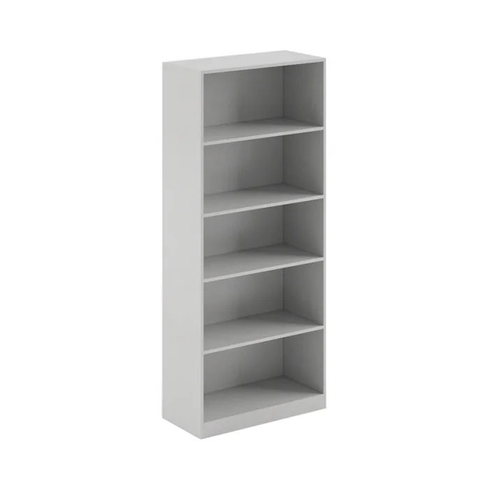 Высокий и широкий стеллаж SIMPLE для офисного или домашнего использования. Размеры - 770х1815х359 мм, цвет - Серый. Имеет четыре открытые полки. Надежная защита торцевых поверхностей - кромка ПВХ. Стеллаж оснащен регулируемыми опорами для компенсации неровностей пола.