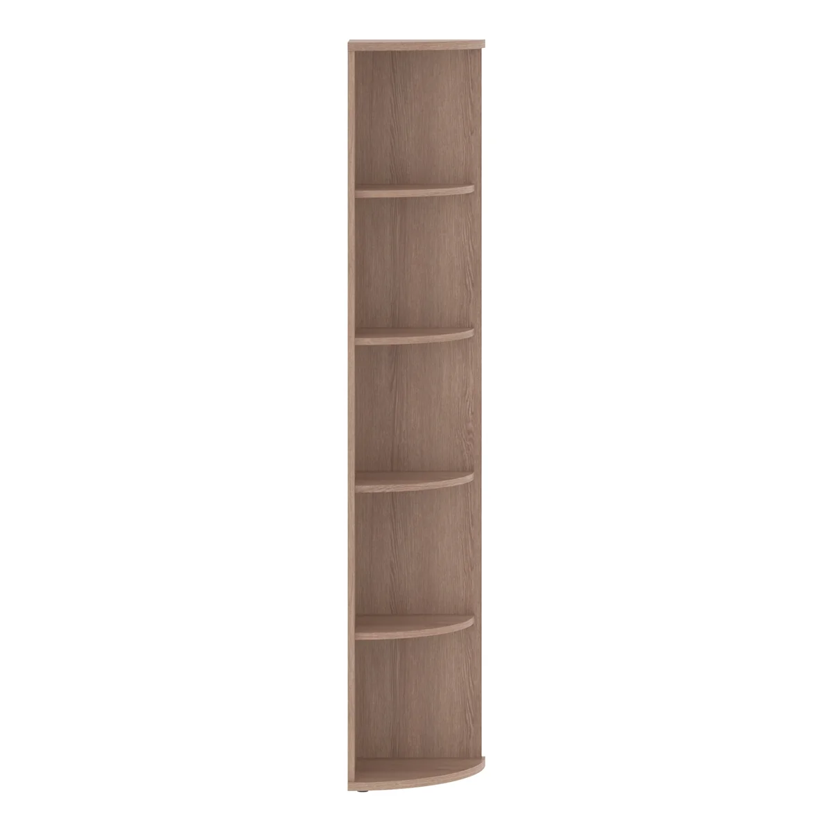 Компактный угловой стеллаж IMAGO для офисного или домашнего использования. Размеры -365х1975х365 мм, цвет – Ясень Шимо. Оснащен 5 просторными и открытыми полочками. Конструкция оснащена прочными силовыми креплениями – эксцентриковыми стяжками. Все торцы основных элементов стеллажа надежно защищены кромкой ПВХ – 2 мм. Регулируемые по высоте опоры обеспечат устойчивость на неровном полу.