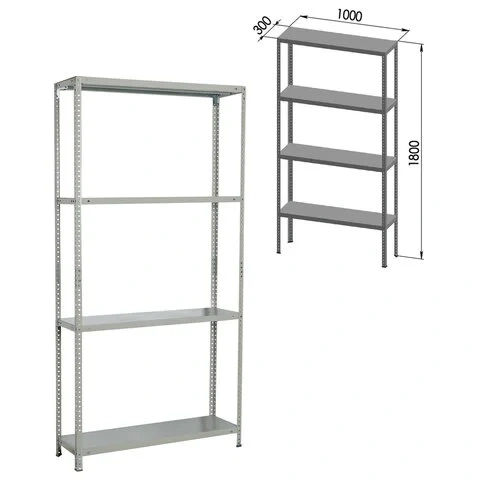 Стеллаж металлический Brabix MS KD-185/30-4 1850х1000х300мм, 4 полки