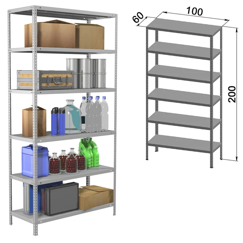 Стеллаж Практик стойка MS Strong 2000*1000*600мм, 6 полок MS Standart, серый