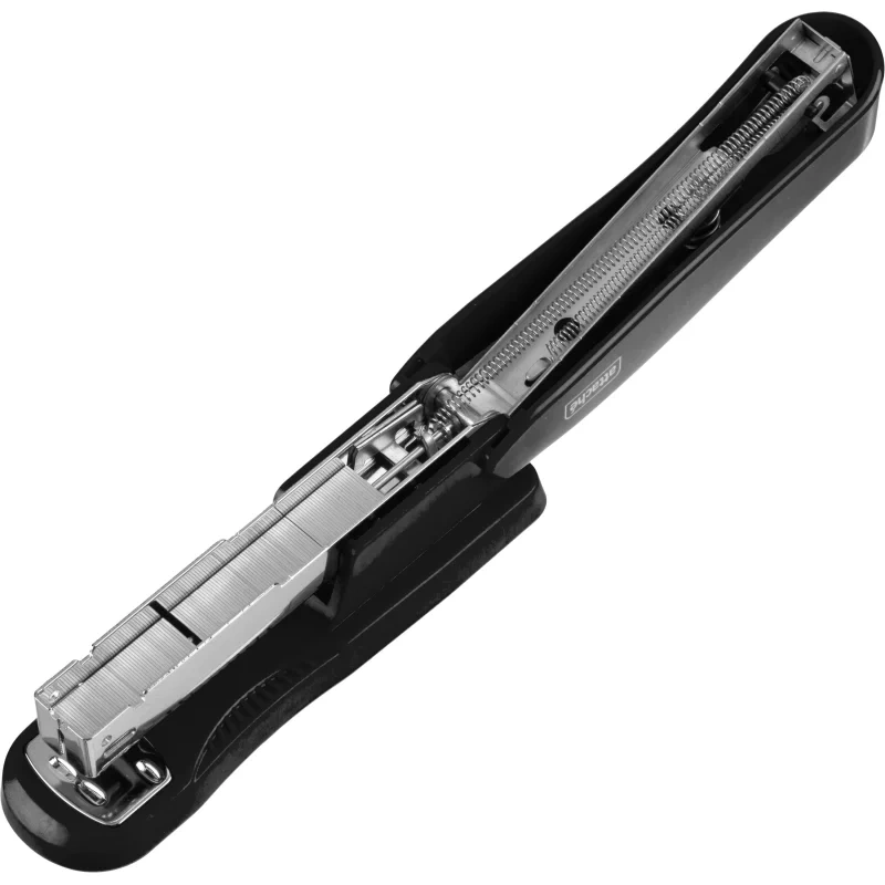 Удобный степлер для использования в офисе и дома. Имеет встроенный антистеплер. Изготовлен из высококачественного пластика. Яркий и насыщенный черный цвет будет подчеркивать строгий стиль своего обладателя.