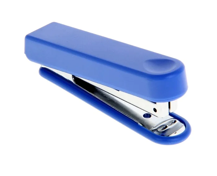 Удобный компактный степлер классического дизайна. Пластиковый корпус синего цвета, встроенный антистеплер. Вмещает 50 скоб №10. Толщина прокола до 10 листов бумаги плотностью 80 г/м