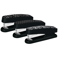 Степлер отличается от других моделей необычным дизайном с рисунком, напечатанным на верхней крышке корпуса. У данной модели пластиковый корпус и полностью металлический механизм. Корпус выполнен в черном цвете с необычным рисунком.