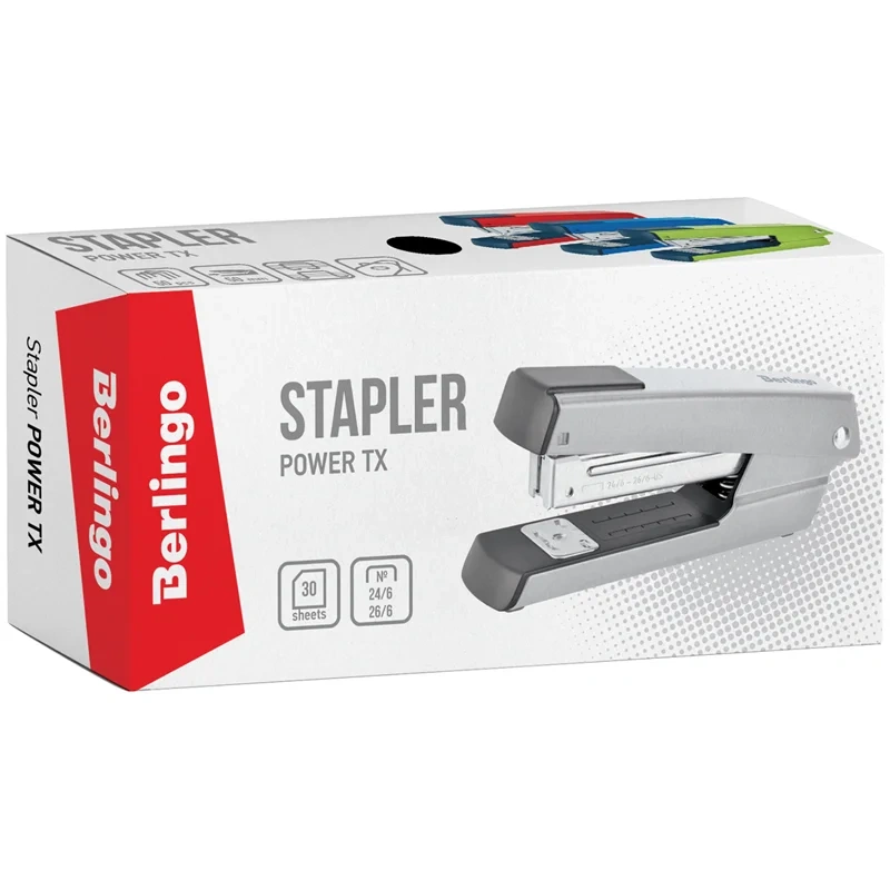 Степлер №24/6, 26/6 Berlingo 'Power TX' до 30л., металлический корпус, красный
